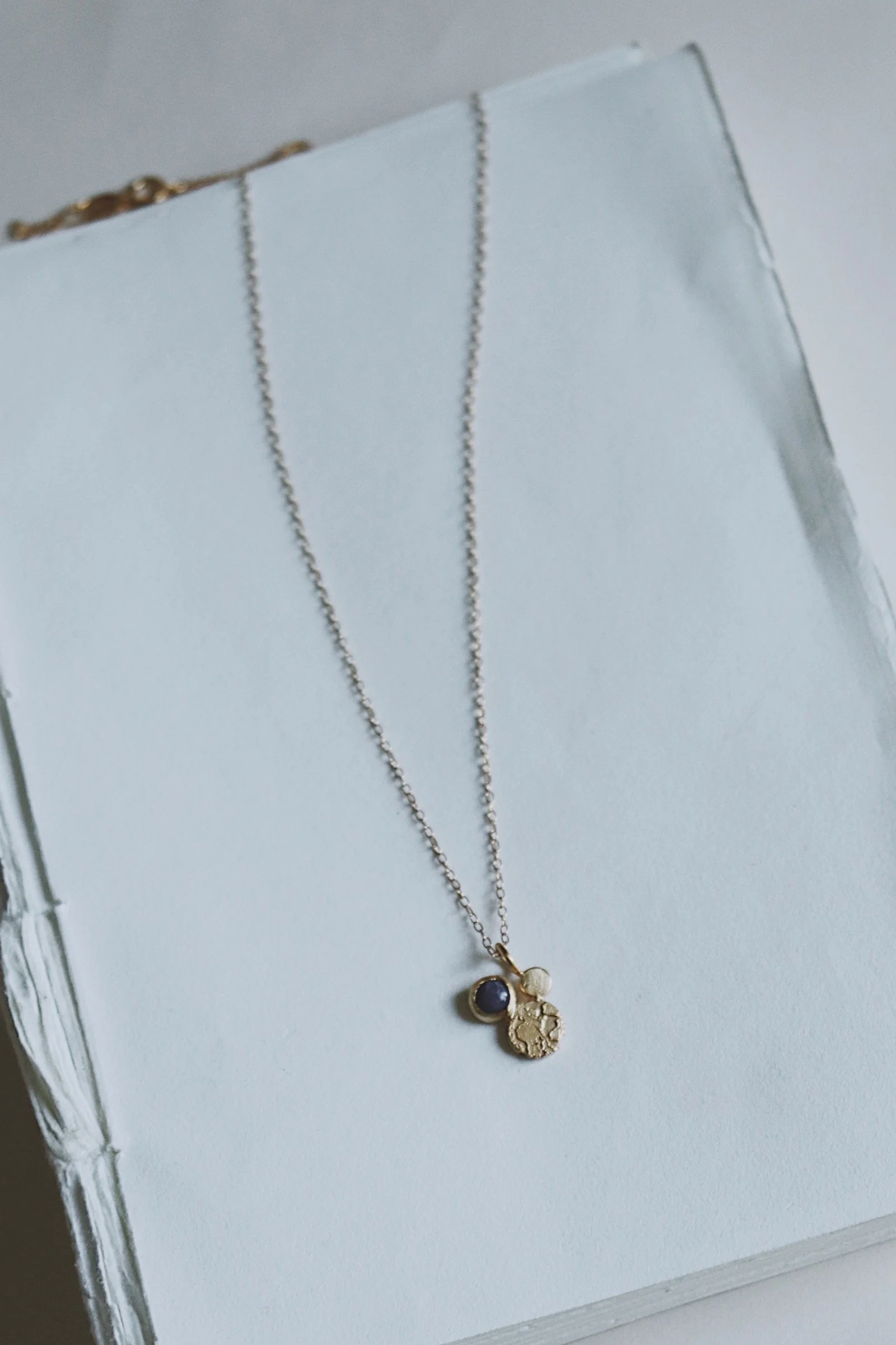 Balancing texture and light, the Strata Necklace brings together two elemental forms — one raw and organic, the other smooth and luminous.