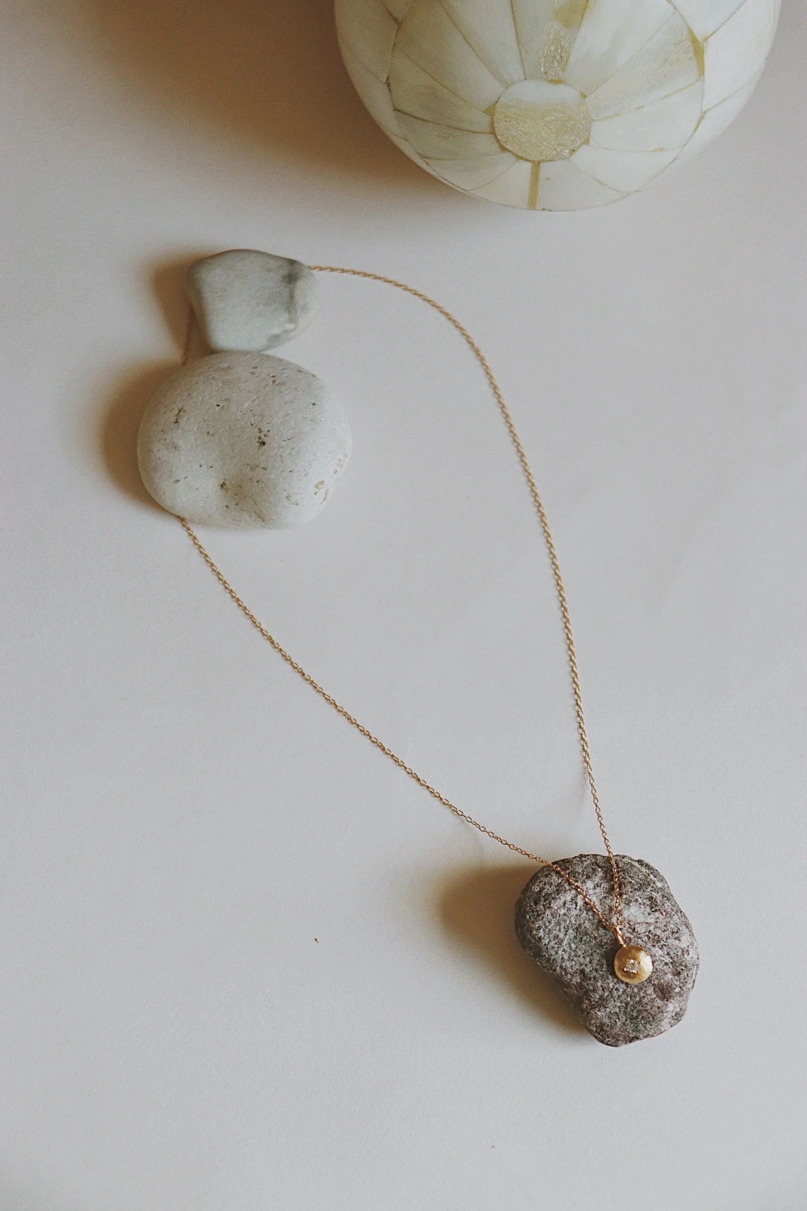 Each small freshwater pearl hangs like a droplet, echoing the soft pull of the tide — suspended between stillness and flow.