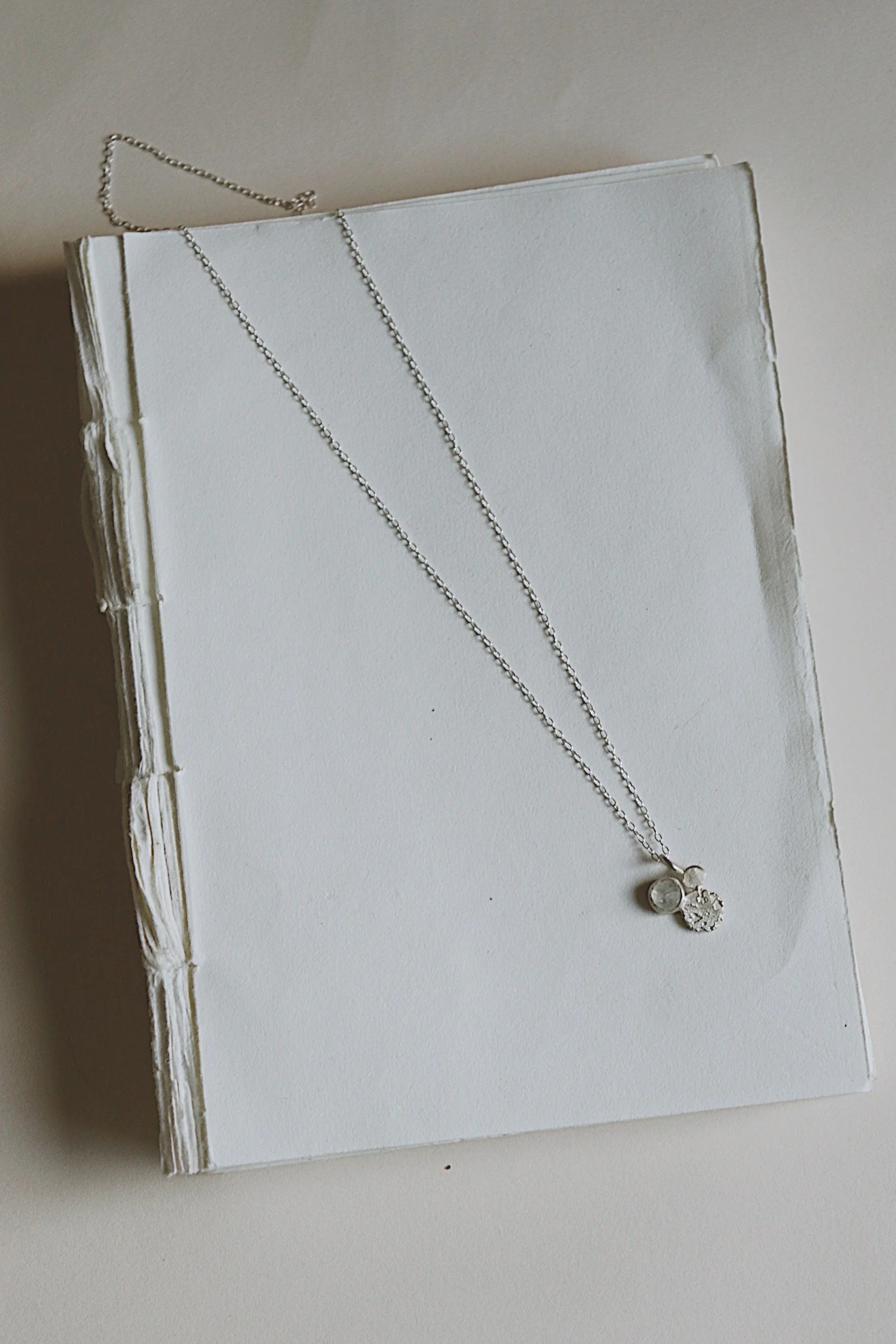 A delicate rhythm of silver and pearl, shaped by movement and light.